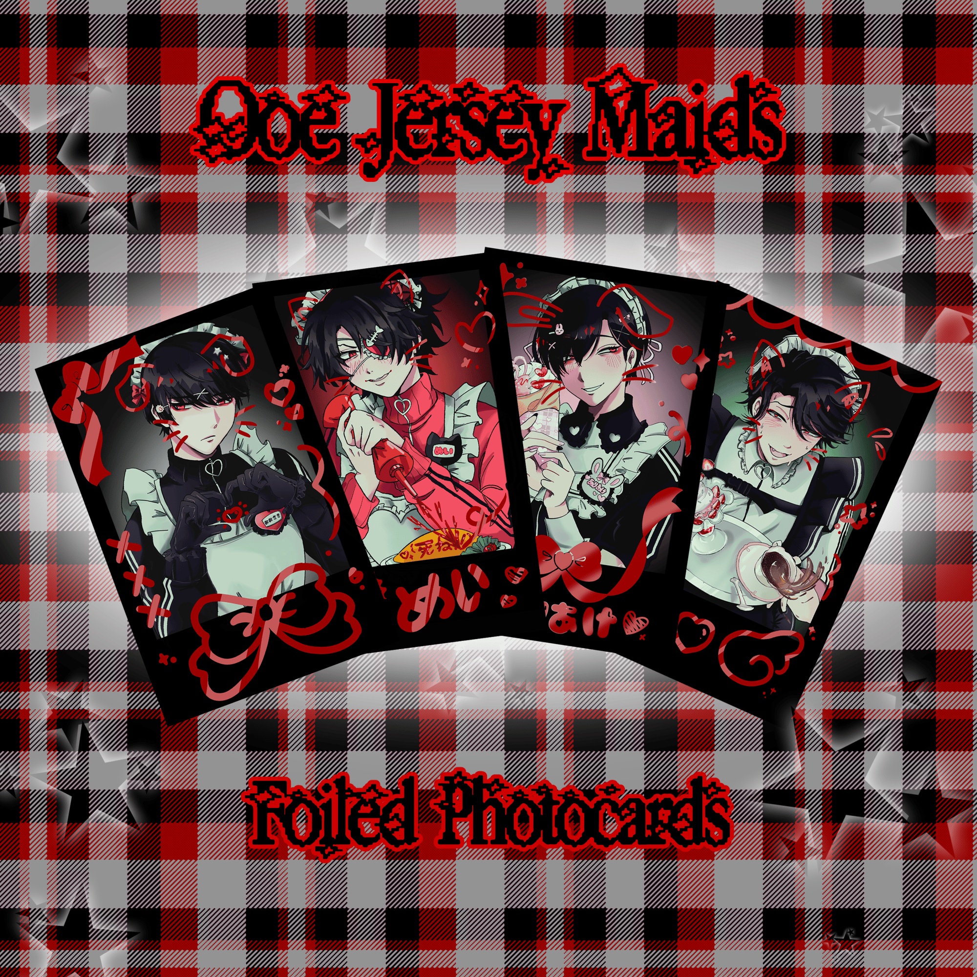 Polaroid prints featuring Ooe characters in Jersey Maid fashion! These polaroids are not printed on real polaroid film. They are printed on 300gsm paper with a red foil effect. Single sided.