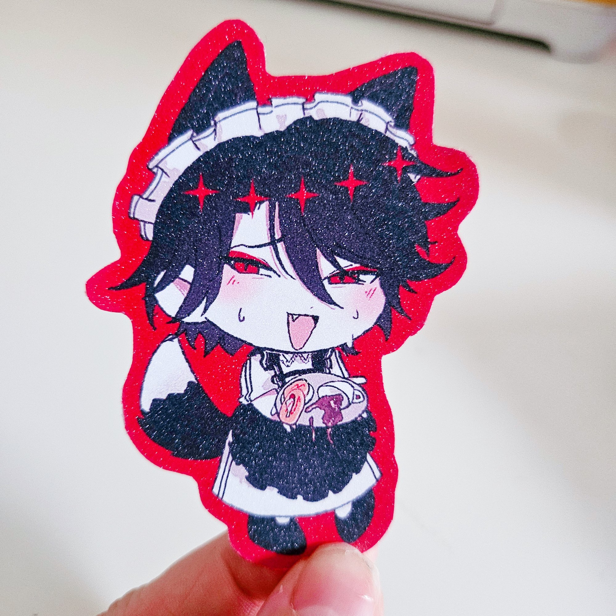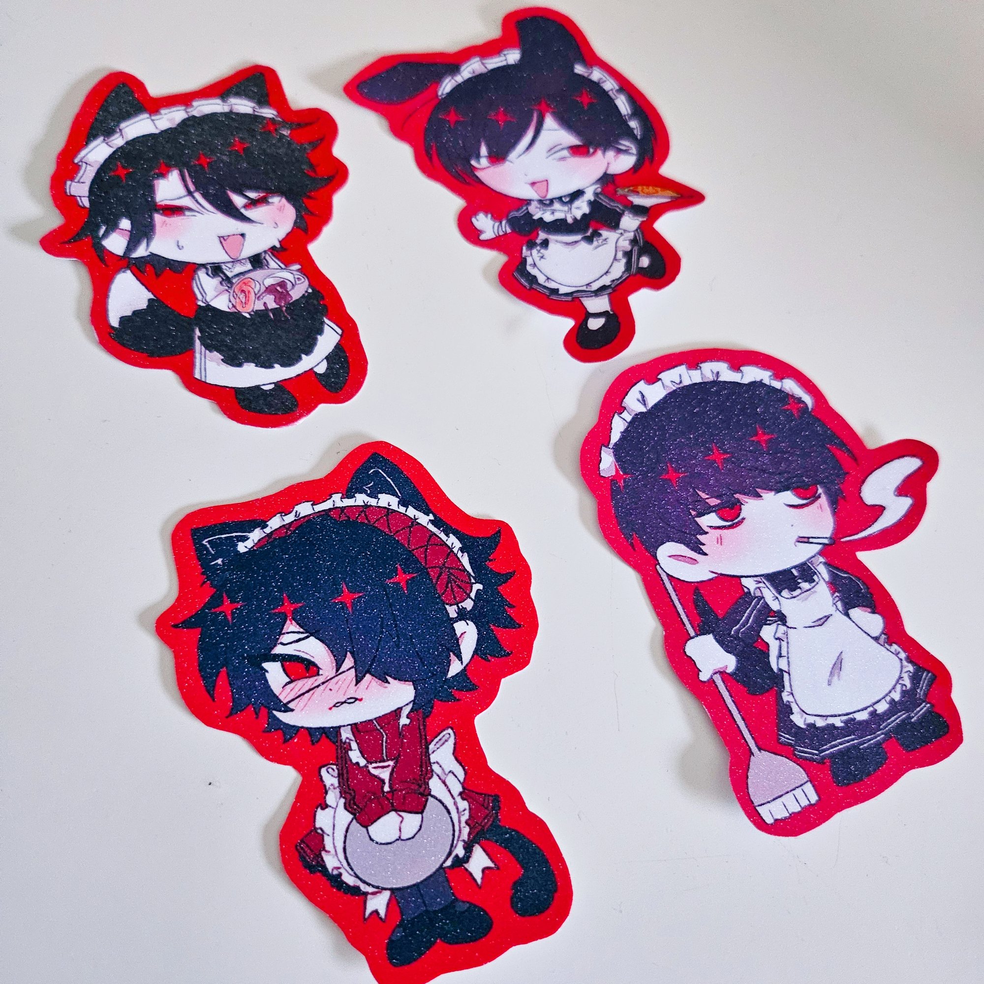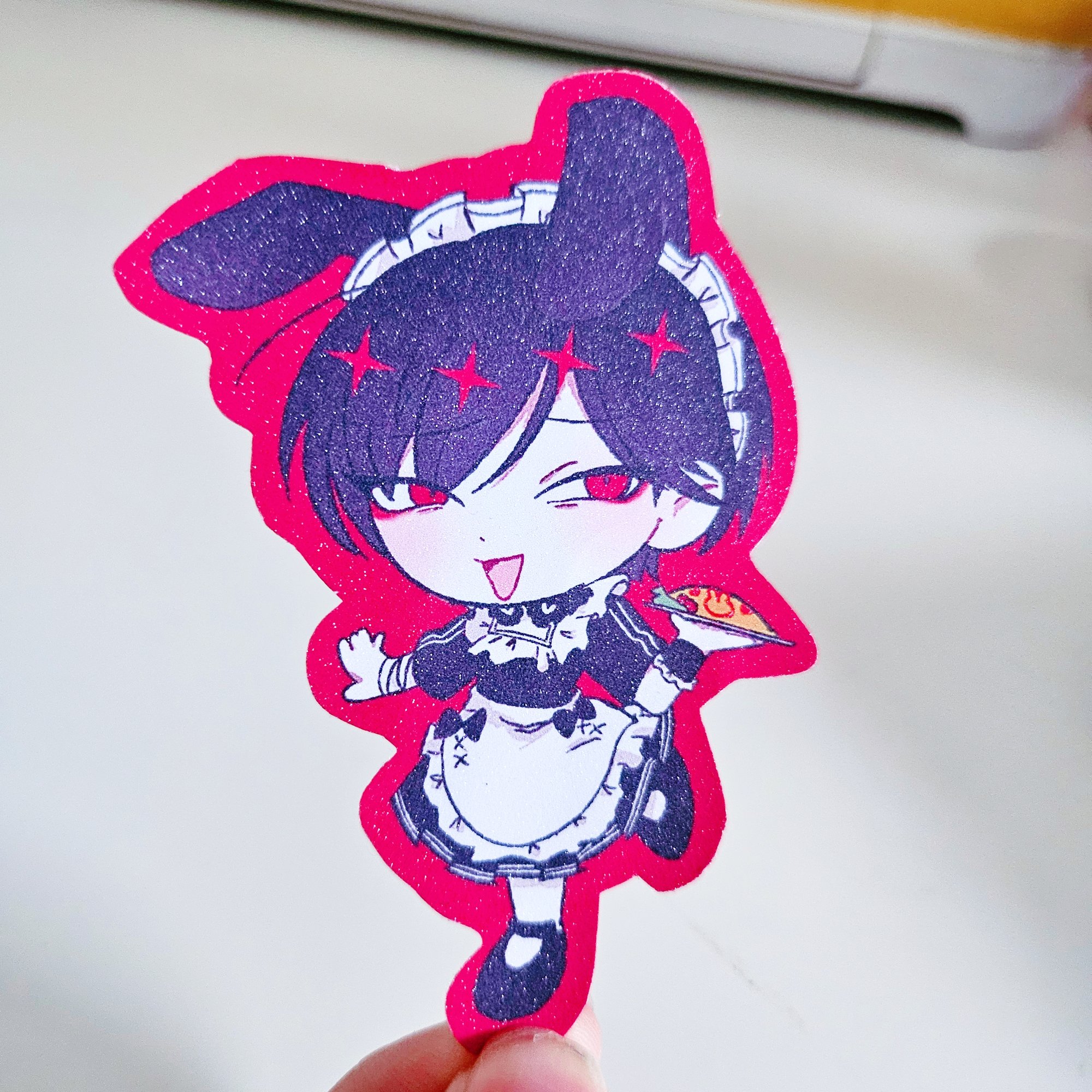 Stickers are hand-cut and home printed, so colours and sizes may vary. They are approximately 7cm though! They have a glittery effect.