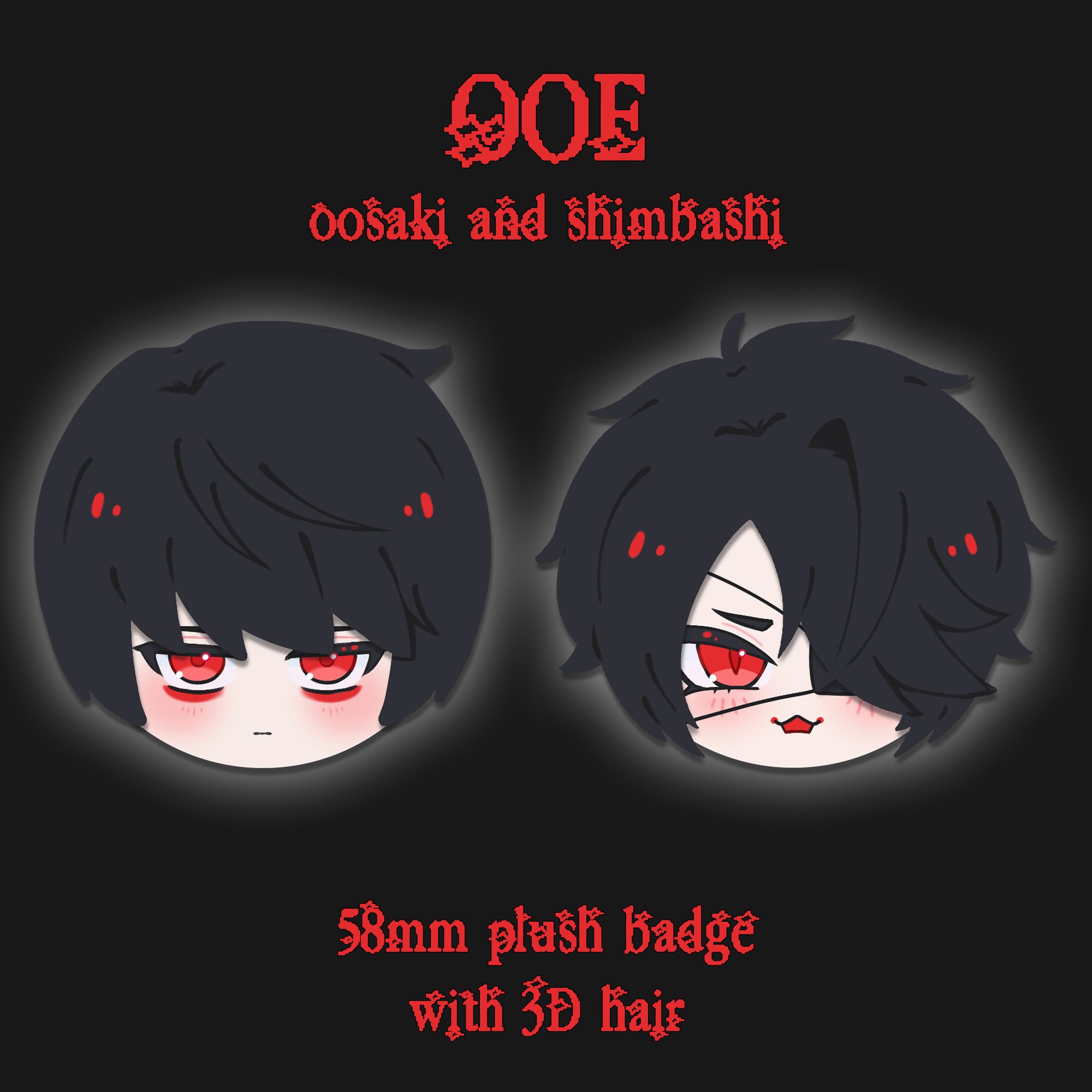 Ooe plush badges with 3D hair.