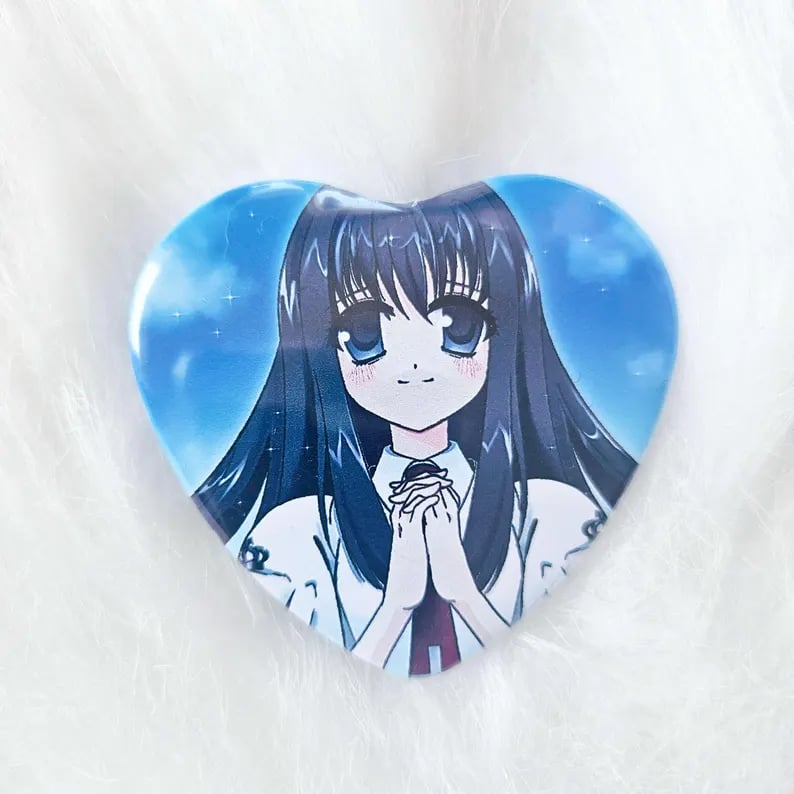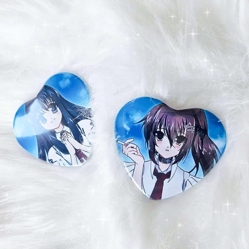 Subarashiki Hibi ~Furenzoku Sonzai~ inspired 2.25" Heart Button Badges!