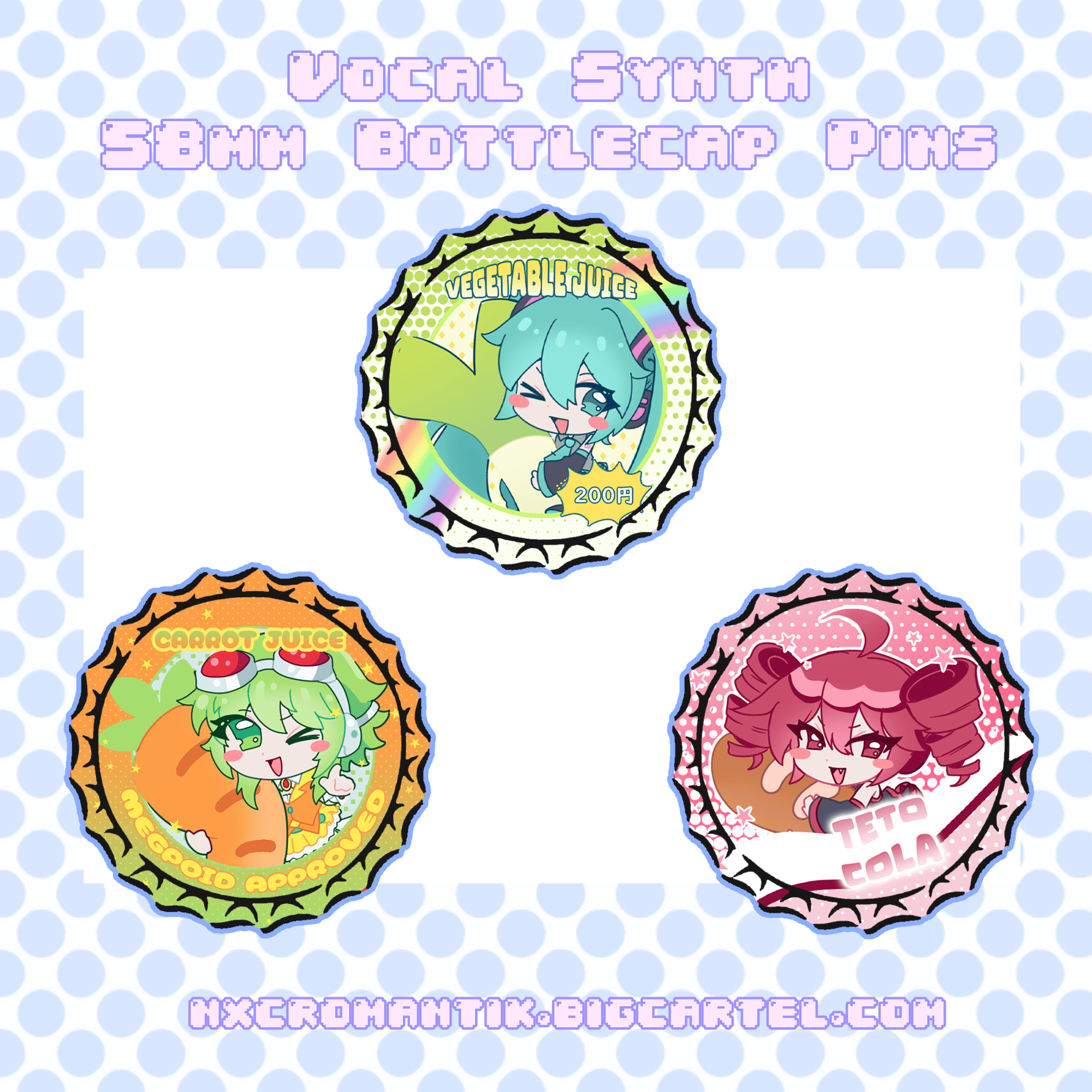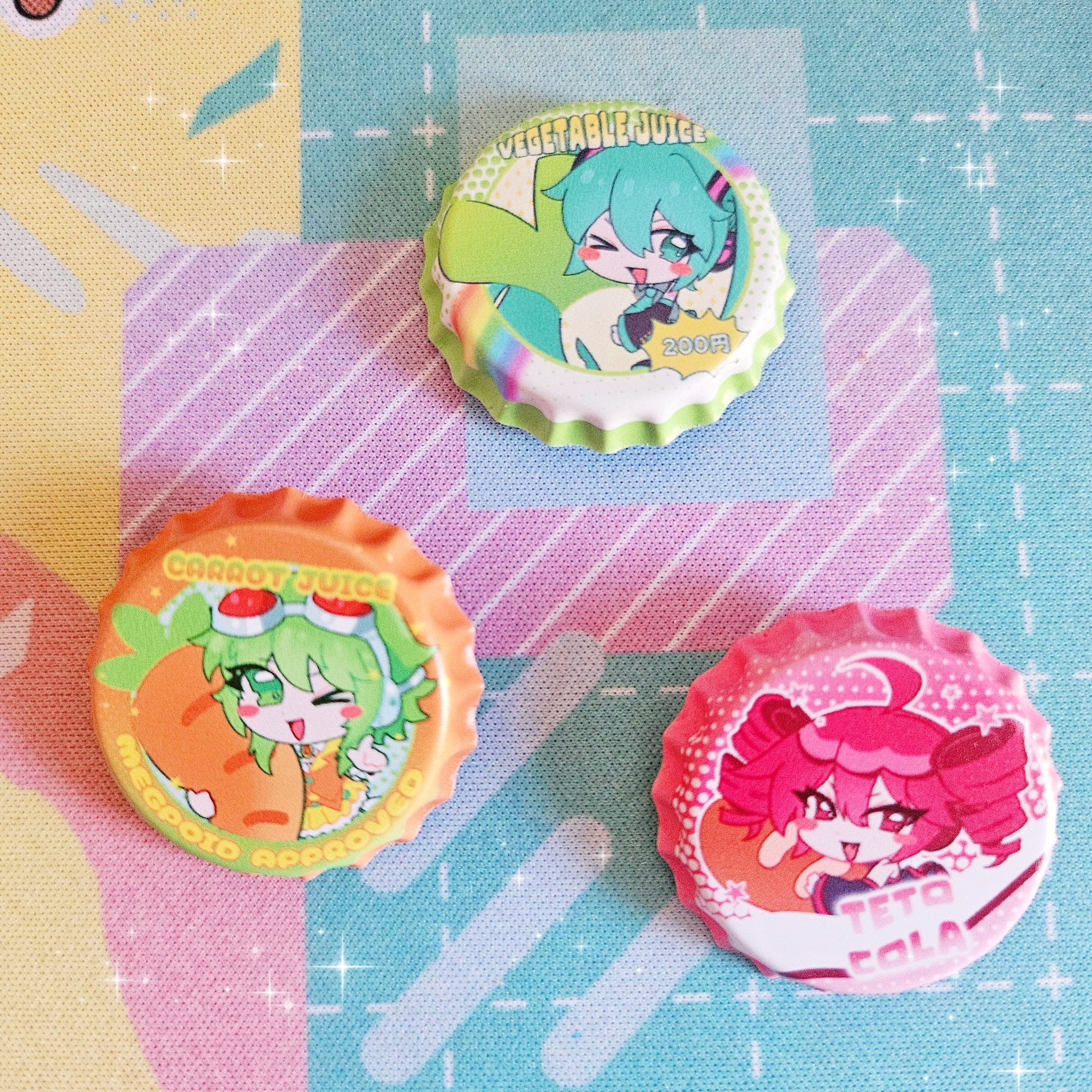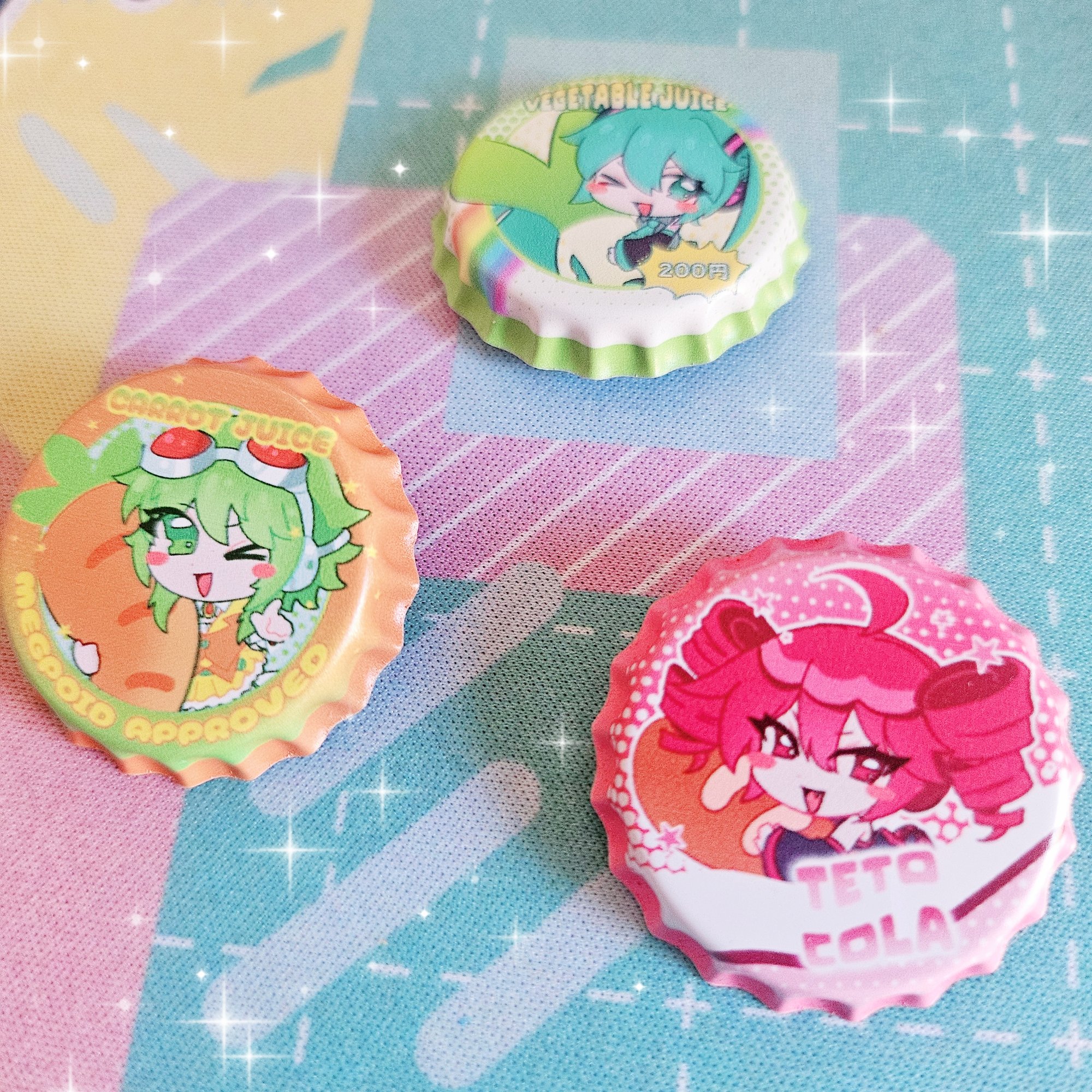 Vocal Synth/Utau/Vocaloid/ bottlecap pins.